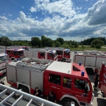 Übungsannahme war ein Drohnenabsturz im Übungsdorf Steinbach, der zu einem Feuerausbruch führte. Zusätzlich bestand die Gefahr von möglichen austretenden gefährlichen Stoffen.