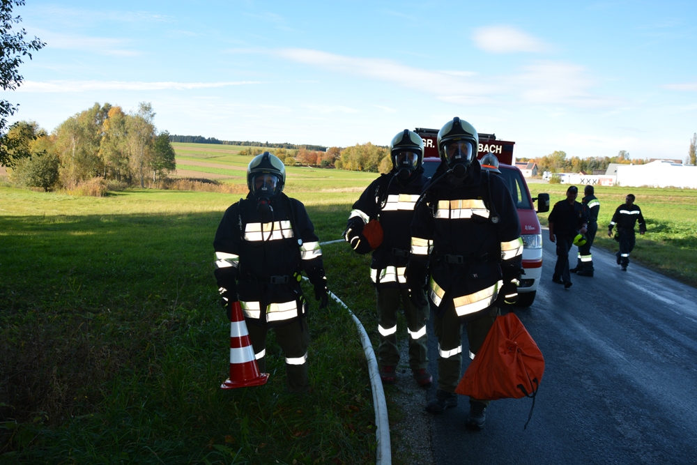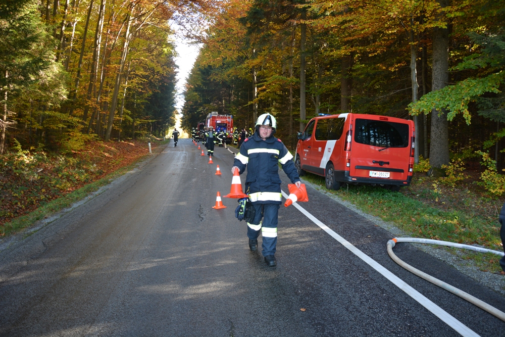 Übungsannahme war ein Waldbrand mit Personenrettung zwischen Großgöttfritz und Engelbrechts. Es rückten insgesamt 64 Mann mit 9 Fahrzeugen aus und bekämpften den Waldbrand und führten mit 3 Atemschutztrupps die Personenrettung durch. Großweißenbach rückte mit 17 Mann und 3 Fahrzeugen aus.